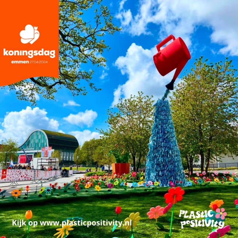 Het circulaire plastic innovatieplein, gehuld in een zee van kleurrijke bloemen en met een knipoog naar de kracht van recycling, was een ware blikvanger. Het plein, omgetoverd tot een prachtige bloementuin, was niet alleen een lust voor het oog, maar ook een bron van inspiratie voor duurzame verandering. Een gigantische gieter, vervaardigd uit gerecyclede plastic flesjes, stroomde over van symboliek, terwijl een vijver van granulaat korrels en meer dan duizend 3D-geprinte bloemen van circulaire plastics de aandacht trokken van de koninklijke gasten en bezoekers.